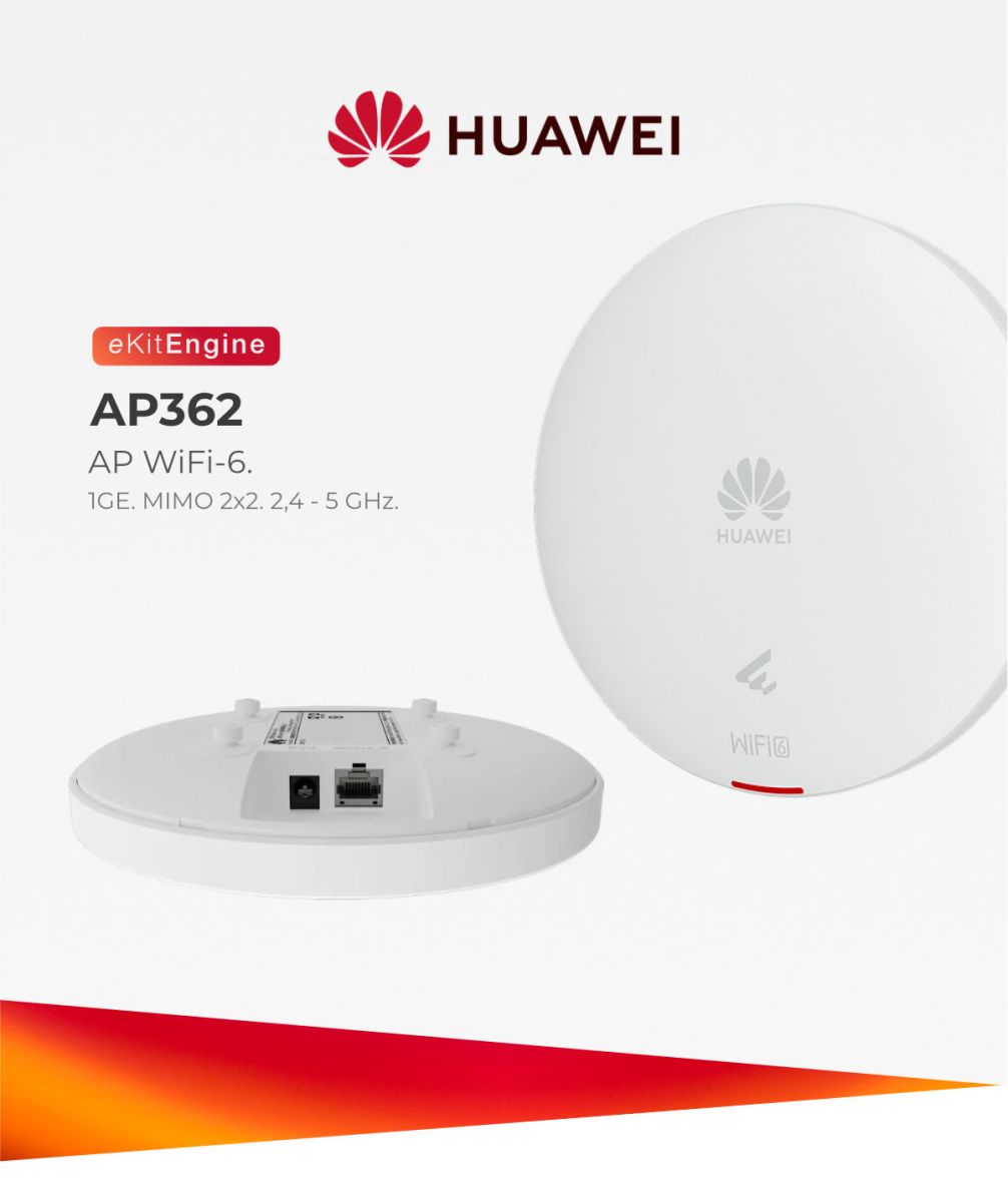 Huawei eKitEngine AP362 é um access point (AP) wall plate Wi-Fi 6 (802.11ax). Pode fornecer simultaneamente sinais de duas bandas de frequência, em 2.4 GHz (2x2 MIMO) e 5 GHz (2x2 MIMO), alcançando uma taxa de dispositivo de até 2,975 Gbps. Este AP apresenta alta largura de banda e alta simultaneidade com tamanho compacto, facilitando a implantação flexível e economizando o investimento dos usuários. Esses pontos fortes tornam o AP362 ideal para cenários de cobertura interna de escritórios de pequenas e médias empresas, hospitais e ensino superior.