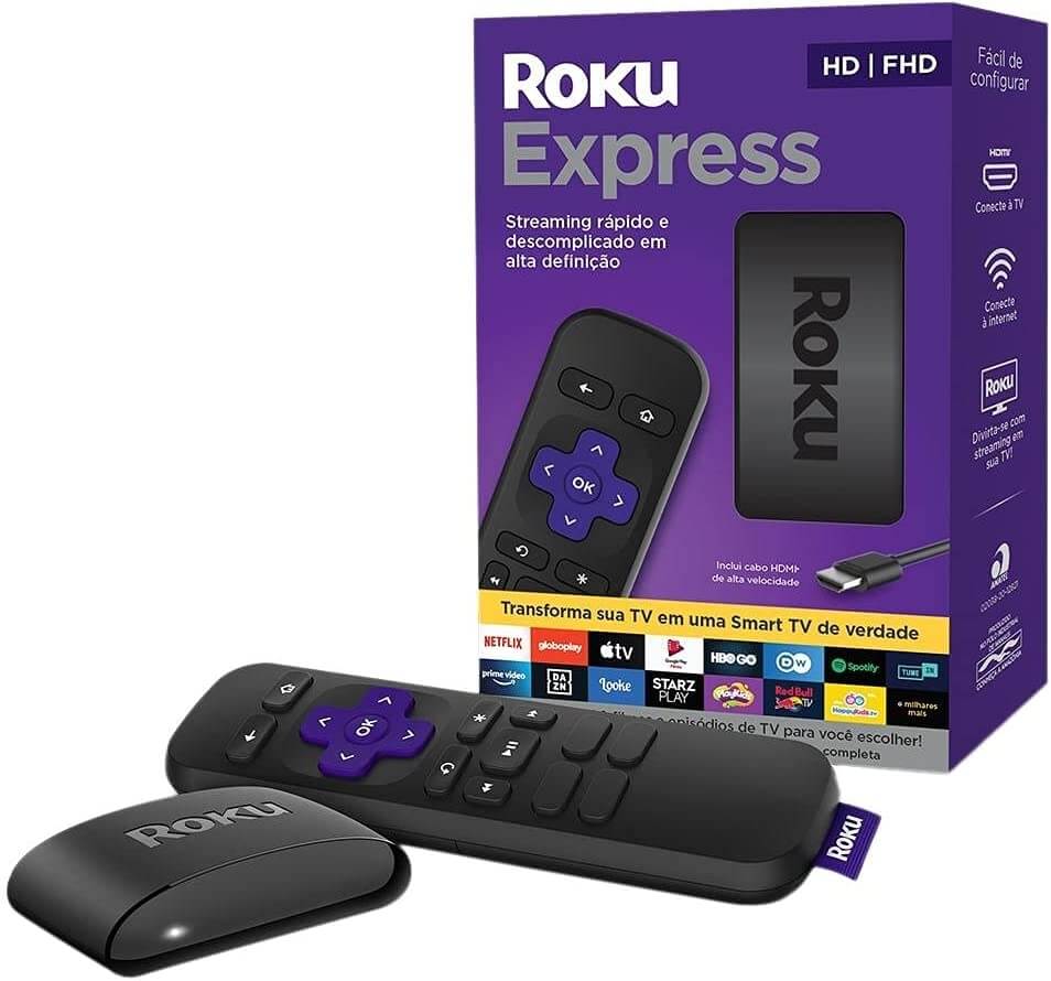 Roku Express oferece uma experiência incrível de streaming por um preço que cabe no seu bolso. São mais de 100.000* filmes e episódios de TV para você escolher nos mais de 5.000 canais de streaming! Com Roku Express Dispositivo Streaming Player, você transforma qualquer TV em uma Smart TV de verdade. * Mediante pagamento diretamente ao canal de streaming escolhido