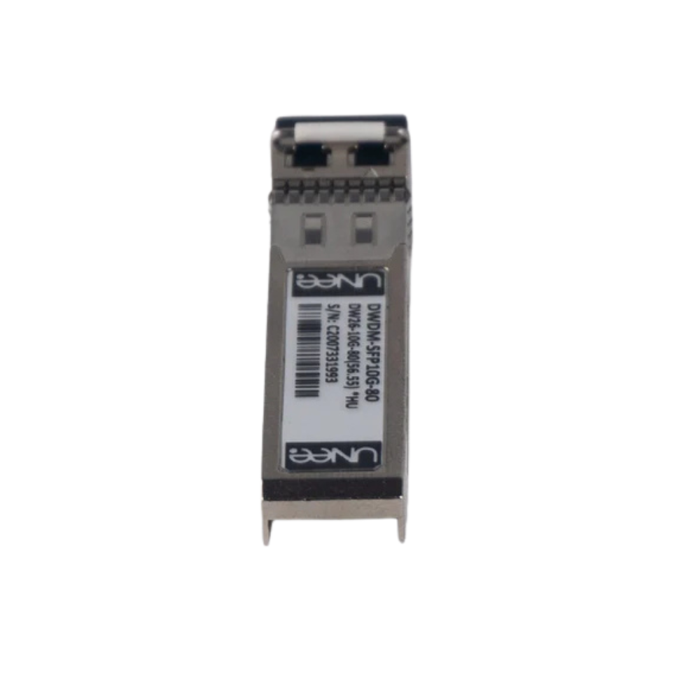 SFP+ de 10Gbps para aplicação em switches e roteadores, com alcance máximo de 80 Km, em fibra óptica monomodo DWDM canal 26. Transmissão unidirecional com DDM (monitoração de parâmetros do módulo óptico). O transceptor DWDM-SFP10G da Unee possui garantia de 1 ano contra qualquer defeito de fabricação.