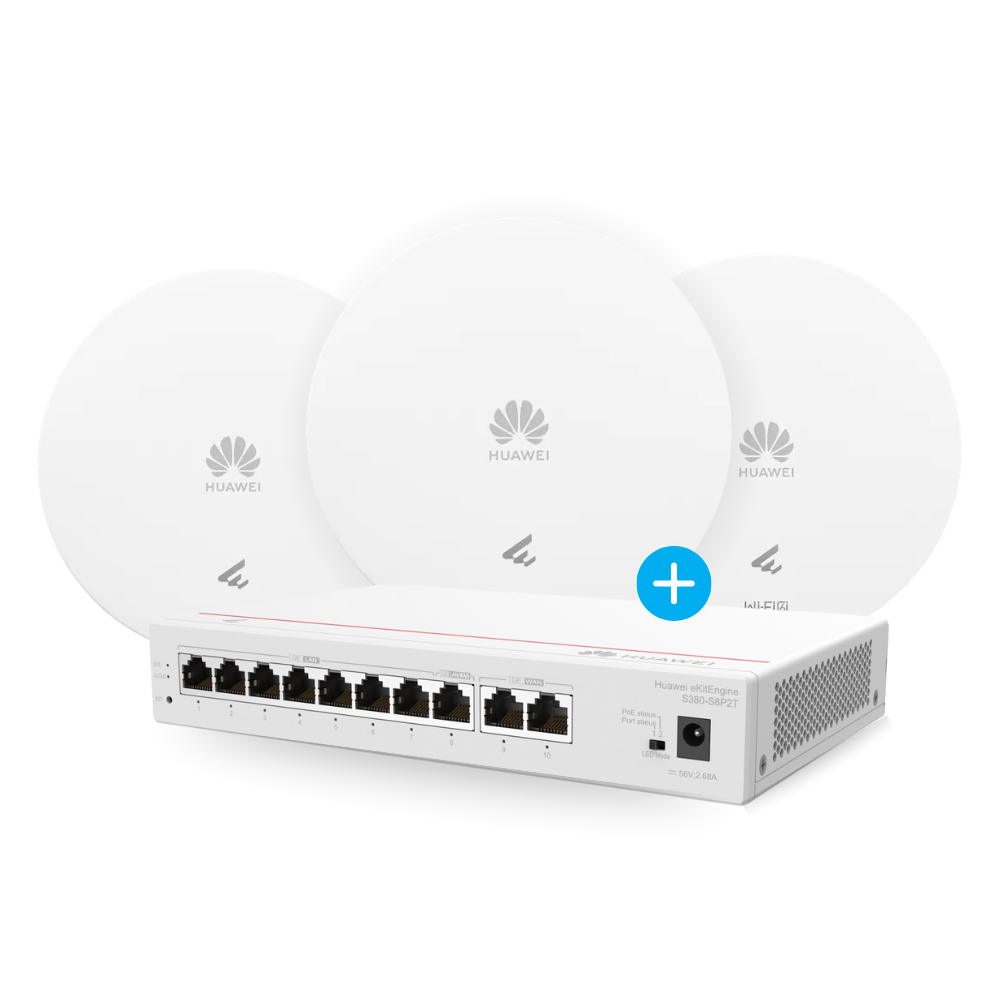 Componentes do kit: Roteador S380-S8P2T e 3 Access Points AP361.